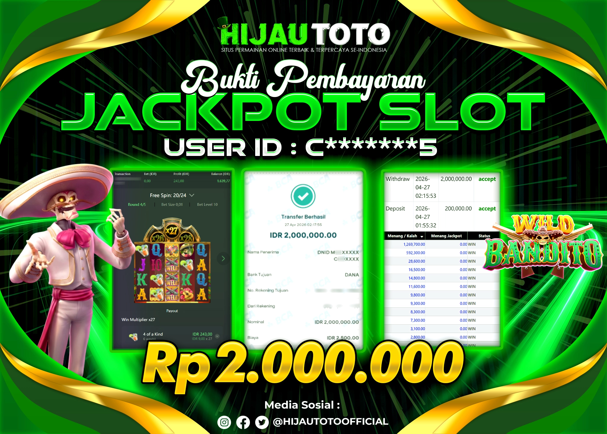 Selamat datang di HIJAUTOTO, tempatnya seru-seruan dan cuan besar! Mulai main cukup dengan modal Rp5.000 aja, taruhan super murah dari Rp100 perak! Mau main slot yang penuh warna? Atau togel dari 20 pasaran paling hits? Atau mungkin tembak ikan yang bikin deg-degan? Tenang, ada juga taruhan bola, sabung ayam, dan live casino yang bikin suasana makin hidup! Daftar sekarang dan dapetin bonus new member 100% langsung, biar modalmu makin tebal. Deposit gampang banget, bisa pakai QRIS, dan kalau butuh bantuan, customer service kita siap 24 jam nonstop. Jadi, tunggu apa lagi? Yuk, gabung dan bawa pulang kemenangannya cuma di HIJAUTOTO!