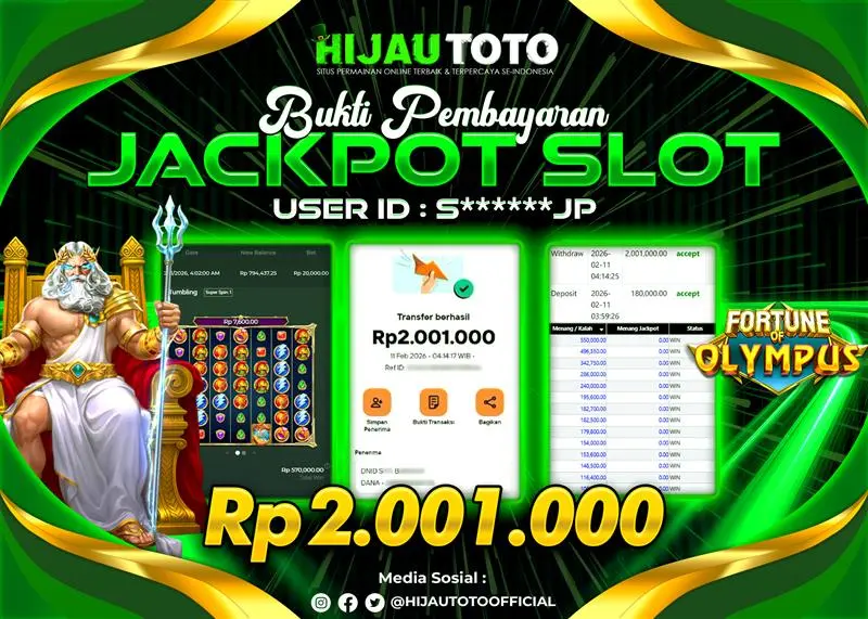 Selamat datang di HIJAUTOTO, tempatnya seru-seruan dan cuan besar! Mulai main cukup dengan modal Rp5.000 aja, taruhan super murah dari Rp100 perak! Mau main slot yang penuh warna? Atau togel dari 20 pasaran paling hits? Atau mungkin tembak ikan yang bikin deg-degan? Tenang, ada juga taruhan bola, sabung ayam, dan live casino yang bikin suasana makin hidup! Daftar sekarang dan dapetin bonus new member 100% langsung, biar modalmu makin tebal. Deposit gampang banget, bisa pakai QRIS, dan kalau butuh bantuan, customer service kita siap 24 jam nonstop. Jadi, tunggu apa lagi? Yuk, gabung dan bawa pulang kemenangannya cuma di HIJAUTOTO!