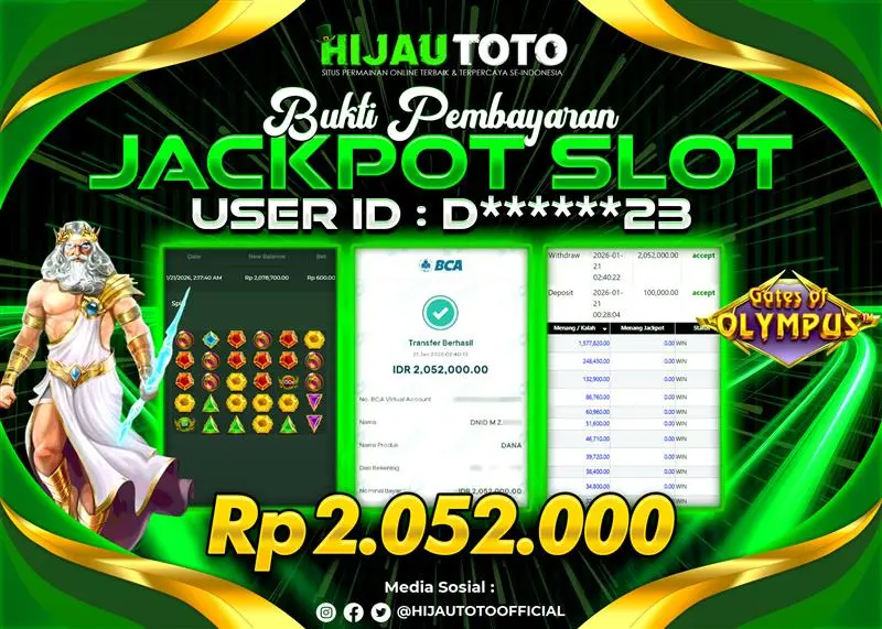 Selamat datang di HIJAUTOTO, tempatnya seru-seruan dan cuan besar! Mulai main cukup dengan modal Rp5.000 aja, taruhan super murah dari Rp100 perak! Mau main slot yang penuh warna? Atau togel dari 20 pasaran paling hits? Atau mungkin tembak ikan yang bikin deg-degan? Tenang, ada juga taruhan bola, sabung ayam, dan live casino yang bikin suasana makin hidup! Daftar sekarang dan dapetin bonus new member 100% langsung, biar modalmu makin tebal. Deposit gampang banget, bisa pakai QRIS, dan kalau butuh bantuan, customer service kita siap 24 jam nonstop. Jadi, tunggu apa lagi? Yuk, gabung dan bawa pulang kemenangannya cuma di HIJAUTOTO!