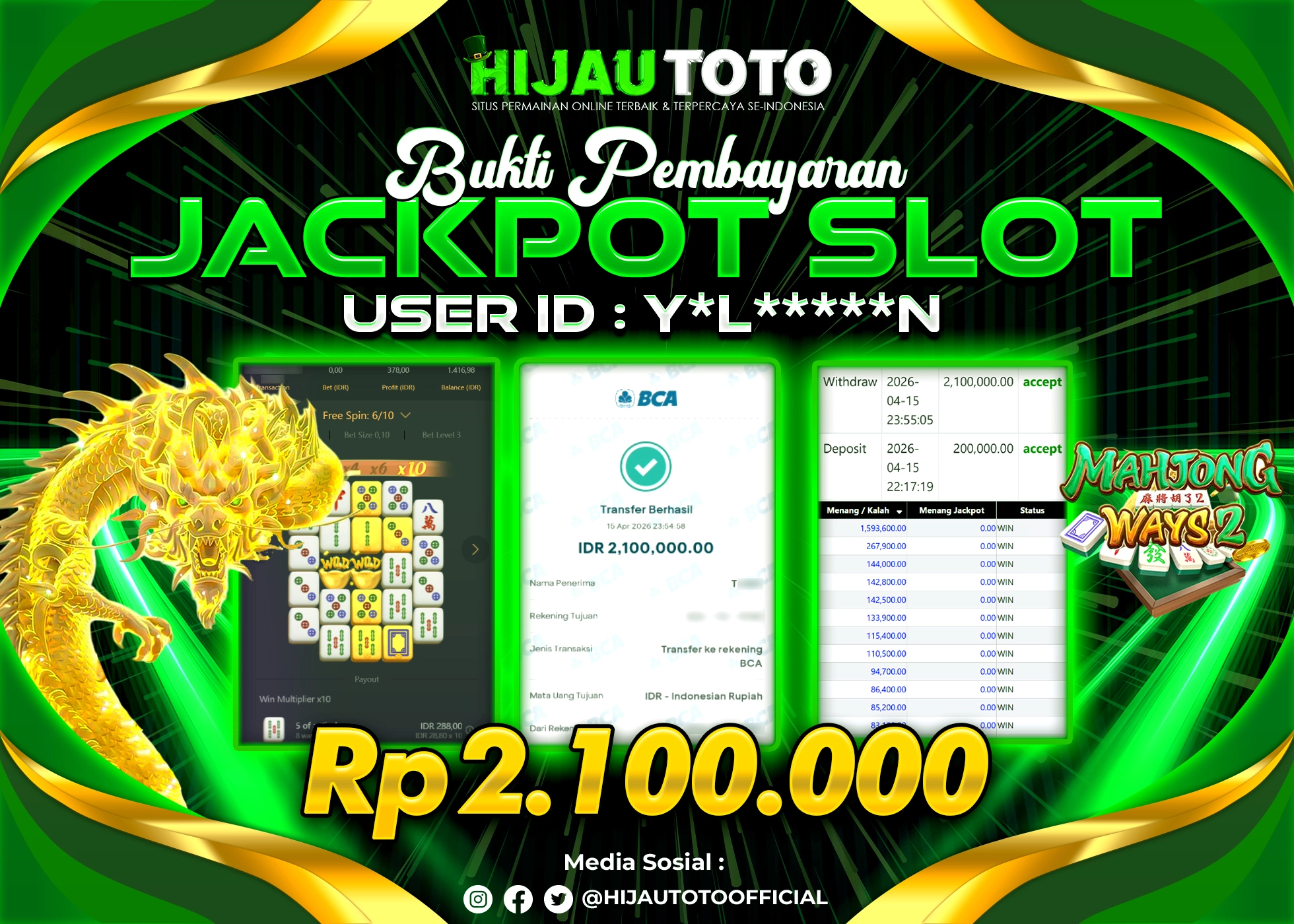 Bergabung dengan HIJAUTOTO sangat mudah dan cepat. Cukup lakukan pendaftaran dengan data lengkap, lakukan deposit minimal Rp5.000 melalui berbagai metode termasuk QRIS, dan mulai bertaruh dengan minimal taruhan Rp100. Dapatkan juga bonus new member 100% untuk modal bermain lebih besar.