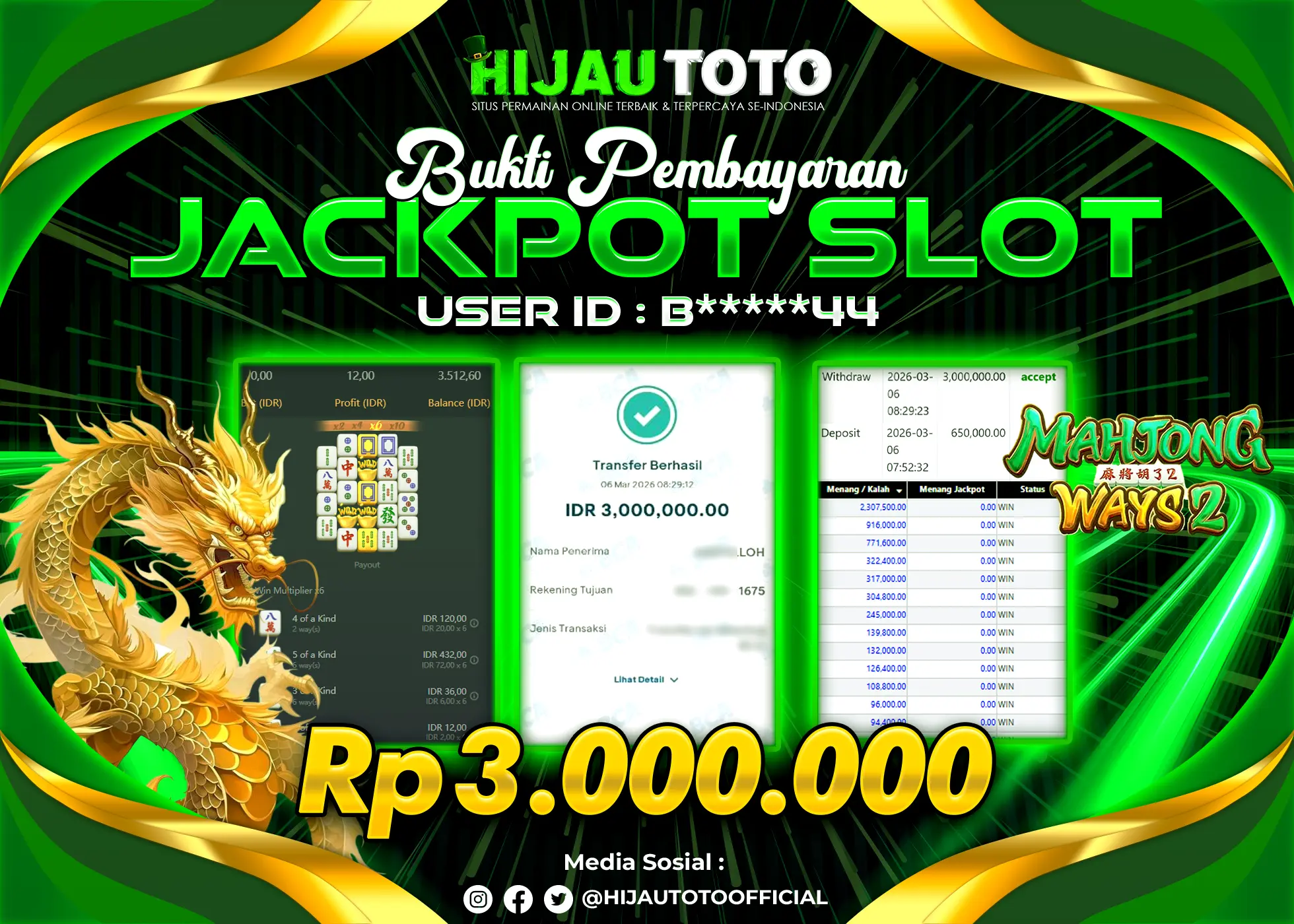 Bergabung dengan HIJAUTOTO sangat mudah dan cepat. Cukup lakukan pendaftaran dengan data lengkap, lakukan deposit minimal Rp5.000 melalui berbagai metode termasuk QRIS, dan mulai bertaruh dengan minimal taruhan Rp100. Dapatkan juga bonus new member 100% untuk modal bermain lebih besar.