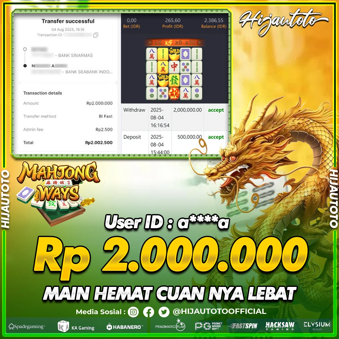 Selamat datang di HIJAUTOTO, tempatnya seru-seruan dan cuan besar! Mulai main cukup dengan modal Rp5.000 aja, taruhan super murah dari Rp100 perak! Mau main slot yang penuh warna? Atau togel dari 20 pasaran paling hits? Atau mungkin tembak ikan yang bikin deg-degan? Tenang, ada juga taruhan bola, sabung ayam, dan live casino yang bikin suasana makin hidup! Daftar sekarang dan dapetin bonus new member 100% langsung, biar modalmu makin tebal. Deposit gampang banget, bisa pakai QRIS, dan kalau butuh bantuan, customer service kita siap 24 jam nonstop. Jadi, tunggu apa lagi? Yuk, gabung dan bawa pulang kemenangannya cuma di HIJAUTOTO!