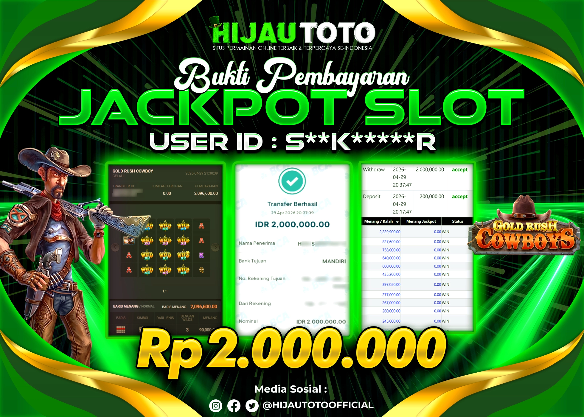 Selamat datang di HIJAUTOTO, tempatnya seru-seruan dan cuan besar! Mulai main cukup dengan modal Rp5.000 aja, taruhan super murah dari Rp100 perak! Mau main slot yang penuh warna? Atau togel dari 20 pasaran paling hits? Atau mungkin tembak ikan yang bikin deg-degan? Tenang, ada juga taruhan bola, sabung ayam, dan live casino yang bikin suasana makin hidup! Daftar sekarang dan dapetin bonus new member 100% langsung, biar modalmu makin tebal. Deposit gampang banget, bisa pakai QRIS, dan kalau butuh bantuan, customer service kita siap 24 jam nonstop. Jadi, tunggu apa lagi? Yuk, gabung dan bawa pulang kemenangannya cuma di HIJAUTOTO!