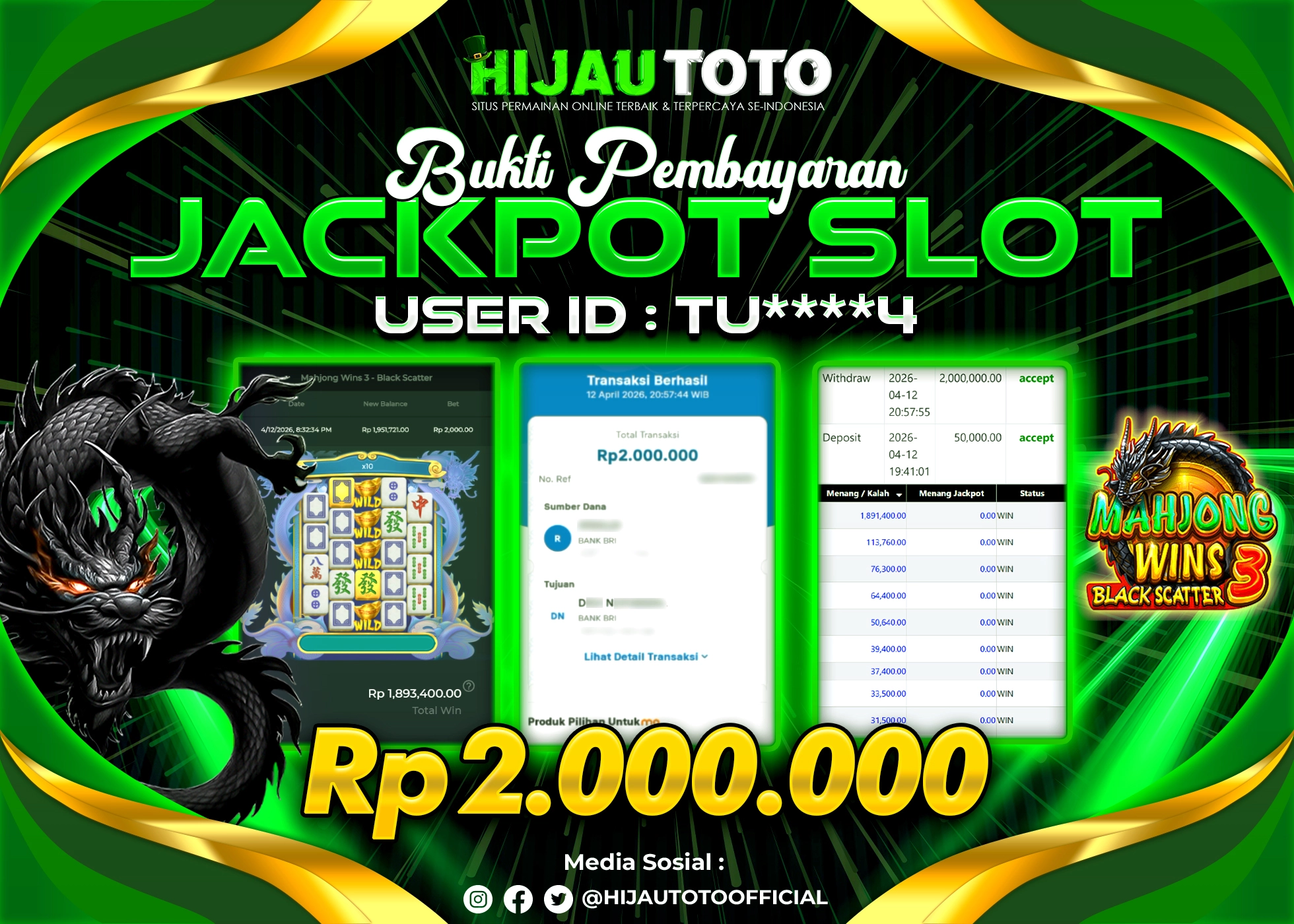 Bergabung dengan HIJAUTOTO sangat mudah dan cepat. Cukup lakukan pendaftaran dengan data lengkap, lakukan deposit minimal Rp5.000 melalui berbagai metode termasuk QRIS, dan mulai bertaruh dengan minimal taruhan Rp100. Dapatkan juga bonus new member 100% untuk modal bermain lebih besar.