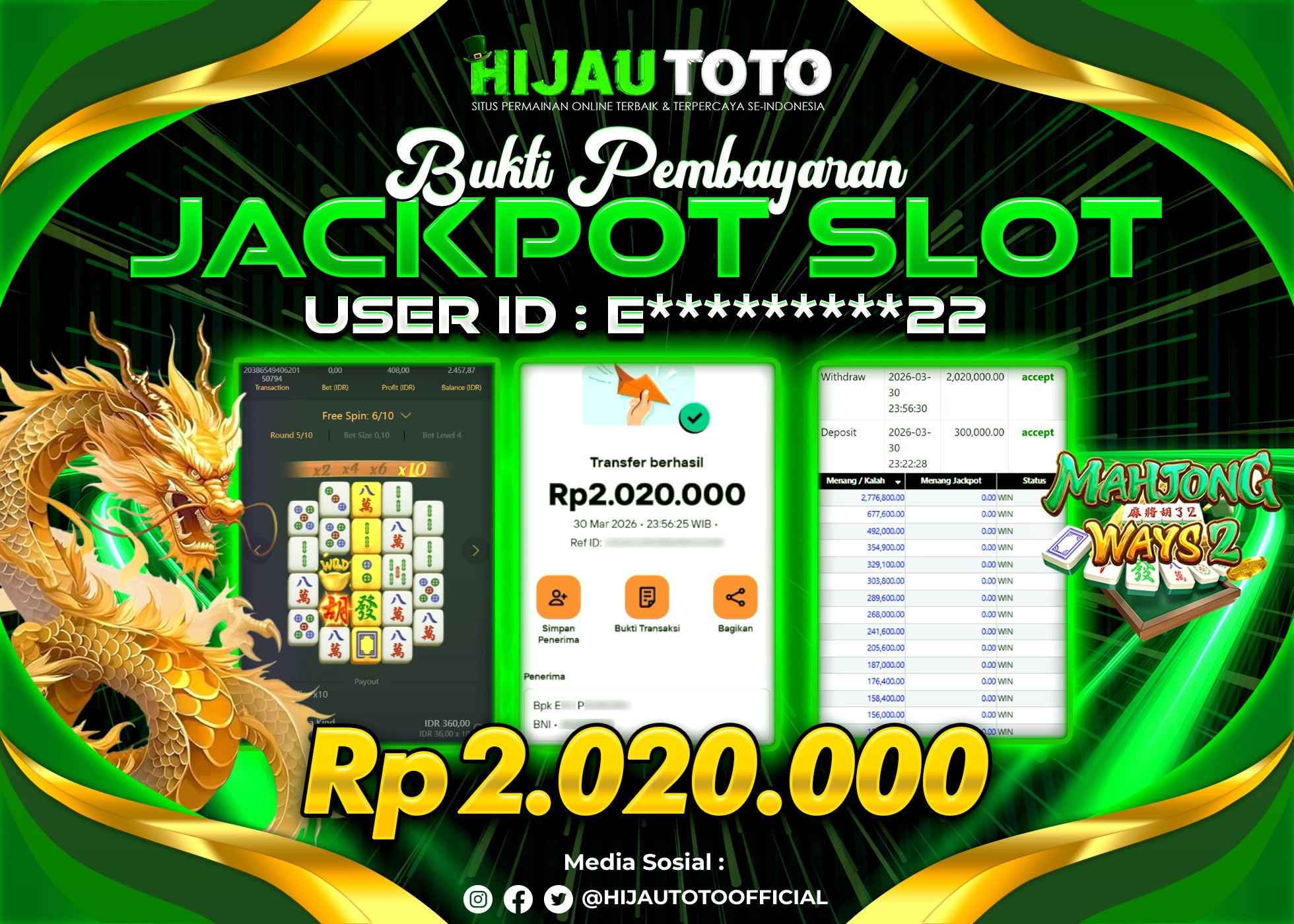 Bergabung dengan HIJAUTOTO sangat mudah dan cepat. Cukup lakukan pendaftaran dengan data lengkap, lakukan deposit minimal Rp5.000 melalui berbagai metode termasuk QRIS, dan mulai bertaruh dengan minimal taruhan Rp100. Dapatkan juga bonus new member 100% untuk modal bermain lebih besar.