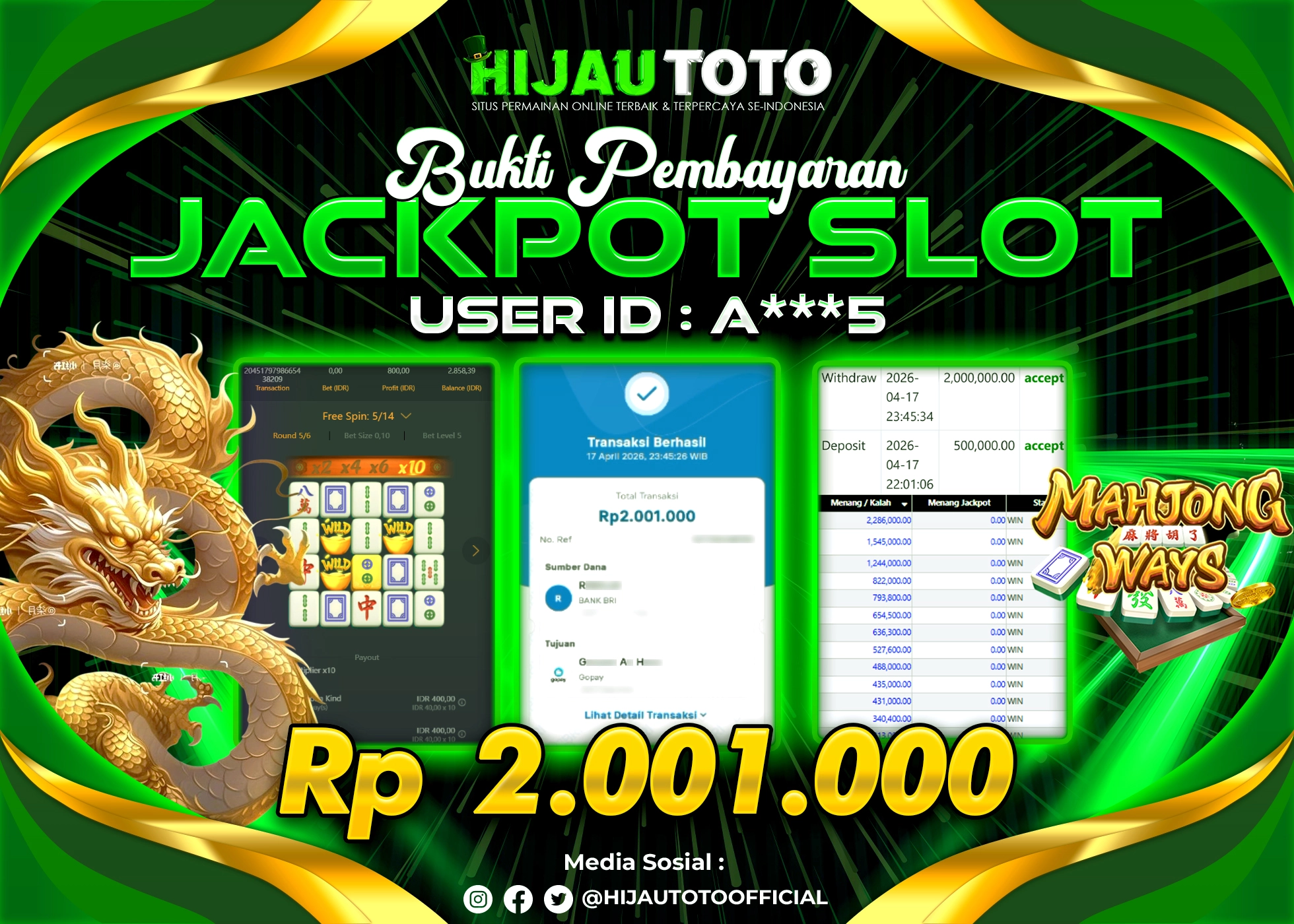 Selamat datang di HIJAUTOTO, tempatnya seru-seruan dan cuan besar! Mulai main cukup dengan modal Rp5.000 aja, taruhan super murah dari Rp100 perak! Mau main slot yang penuh warna? Atau togel dari 20 pasaran paling hits? Atau mungkin tembak ikan yang bikin deg-degan? Tenang, ada juga taruhan bola, sabung ayam, dan live casino yang bikin suasana makin hidup! Daftar sekarang dan dapetin bonus new member 100% langsung, biar modalmu makin tebal. Deposit gampang banget, bisa pakai QRIS, dan kalau butuh bantuan, customer service kita siap 24 jam nonstop. Jadi, tunggu apa lagi? Yuk, gabung dan bawa pulang kemenangannya cuma di HIJAUTOTO!