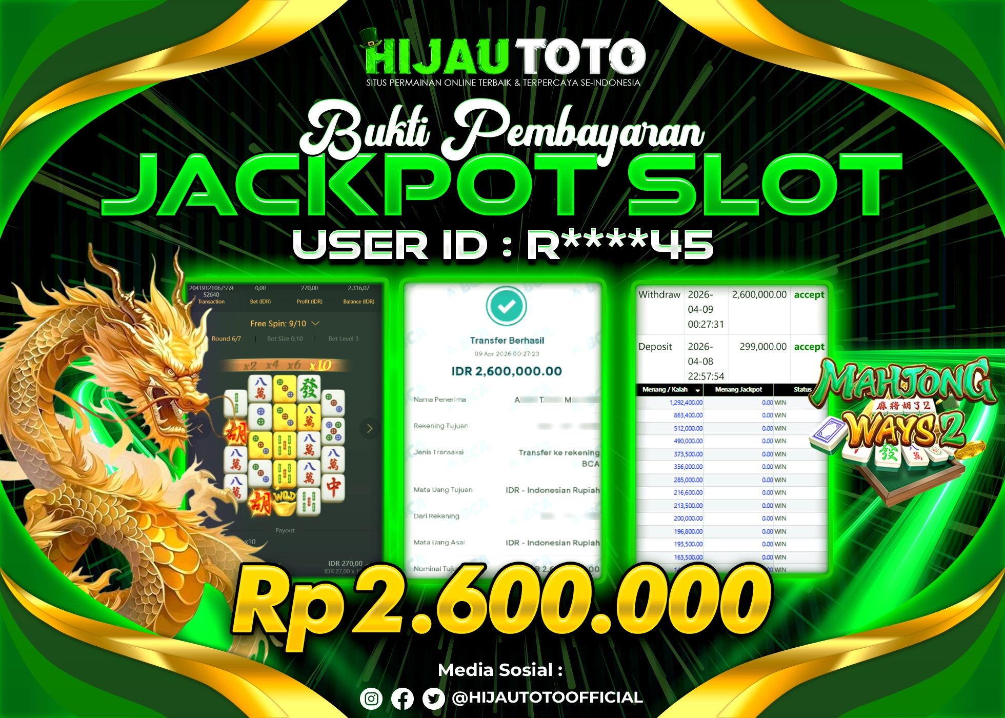 Selamat datang di HIJAUTOTO, tempatnya seru-seruan dan cuan besar! Mulai main cukup dengan modal Rp5.000 aja, taruhan super murah dari Rp100 perak! Mau main slot yang penuh warna? Atau togel dari 20 pasaran paling hits? Atau mungkin tembak ikan yang bikin deg-degan? Tenang, ada juga taruhan bola, sabung ayam, dan live casino yang bikin suasana makin hidup! Daftar sekarang dan dapetin bonus new member 100% langsung, biar modalmu makin tebal. Deposit gampang banget, bisa pakai QRIS, dan kalau butuh bantuan, customer service kita siap 24 jam nonstop. Jadi, tunggu apa lagi? Yuk, gabung dan bawa pulang kemenangannya cuma di HIJAUTOTO!