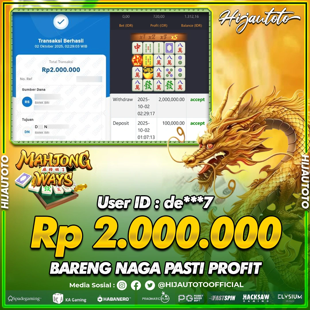 Selamat datang di HIJAUTOTO, tempatnya seru-seruan dan cuan besar! Mulai main cukup dengan modal Rp5.000 aja, taruhan super murah dari Rp100 perak! Mau main slot yang penuh warna? Atau togel dari 20 pasaran paling hits? Atau mungkin tembak ikan yang bikin deg-degan? Tenang, ada juga taruhan bola, sabung ayam, dan live casino yang bikin suasana makin hidup! Daftar sekarang dan dapetin bonus new member 100% langsung, biar modalmu makin tebal. Deposit gampang banget, bisa pakai QRIS, dan kalau butuh bantuan, customer service kita siap 24 jam nonstop. Jadi, tunggu apa lagi? Yuk, gabung dan bawa pulang kemenangannya cuma di HIJAUTOTO!