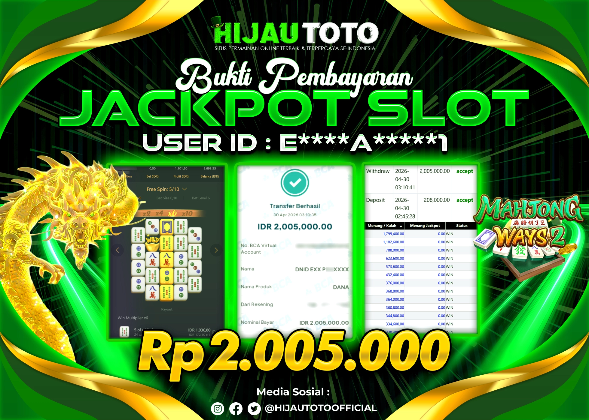 Bergabung dengan HIJAUTOTO sangat mudah dan cepat. Cukup lakukan pendaftaran dengan data lengkap, lakukan deposit minimal Rp5.000 melalui berbagai metode termasuk QRIS, dan mulai bertaruh dengan minimal taruhan Rp100. Dapatkan juga bonus new member 100% untuk modal bermain lebih besar.