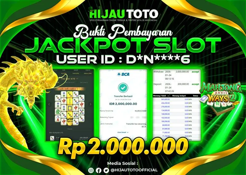 Selamat datang di HIJAUTOTO, tempatnya seru-seruan dan cuan besar! Mulai main cukup dengan modal Rp5.000 aja, taruhan super murah dari Rp100 perak! Mau main slot yang penuh warna? Atau togel dari 20 pasaran paling hits? Atau mungkin tembak ikan yang bikin deg-degan? Tenang, ada juga taruhan bola, sabung ayam, dan live casino yang bikin suasana makin hidup! Daftar sekarang dan dapetin bonus new member 100% langsung, biar modalmu makin tebal. Deposit gampang banget, bisa pakai QRIS, dan kalau butuh bantuan, customer service kita siap 24 jam nonstop. Jadi, tunggu apa lagi? Yuk, gabung dan bawa pulang kemenangannya cuma di HIJAUTOTO!