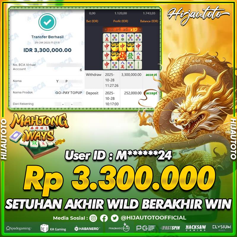 Selamat Kepada Member HIJAUTOTO J****G Telah Jackpot Di SLOT MAHJONG WAYS 2
