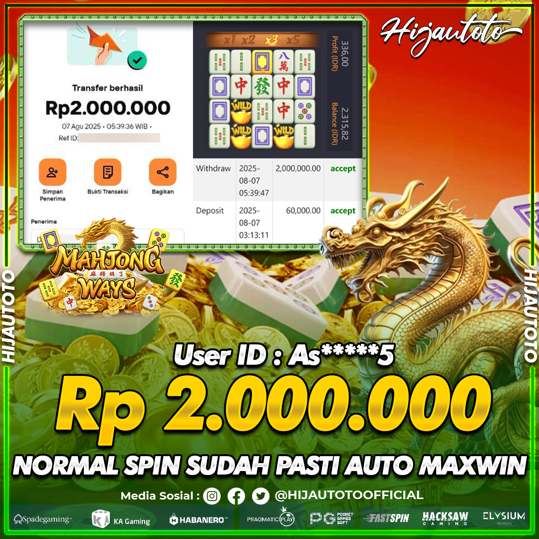 Selamat datang di HIJAUTOTO, tempatnya seru-seruan dan cuan besar! Mulai main cukup dengan modal Rp5.000 aja, taruhan super murah dari Rp100 perak! Mau main slot yang penuh warna? Atau togel dari 20 pasaran paling hits? Atau mungkin tembak ikan yang bikin deg-degan? Tenang, ada juga taruhan bola, sabung ayam, dan live casino yang bikin suasana makin hidup! Daftar sekarang dan dapetin bonus new member 100% langsung, biar modalmu makin tebal. Deposit gampang banget, bisa pakai QRIS, dan kalau butuh bantuan, customer service kita siap 24 jam nonstop. Jadi, tunggu apa lagi? Yuk, gabung dan bawa pulang kemenangannya cuma di HIJAUTOTO!