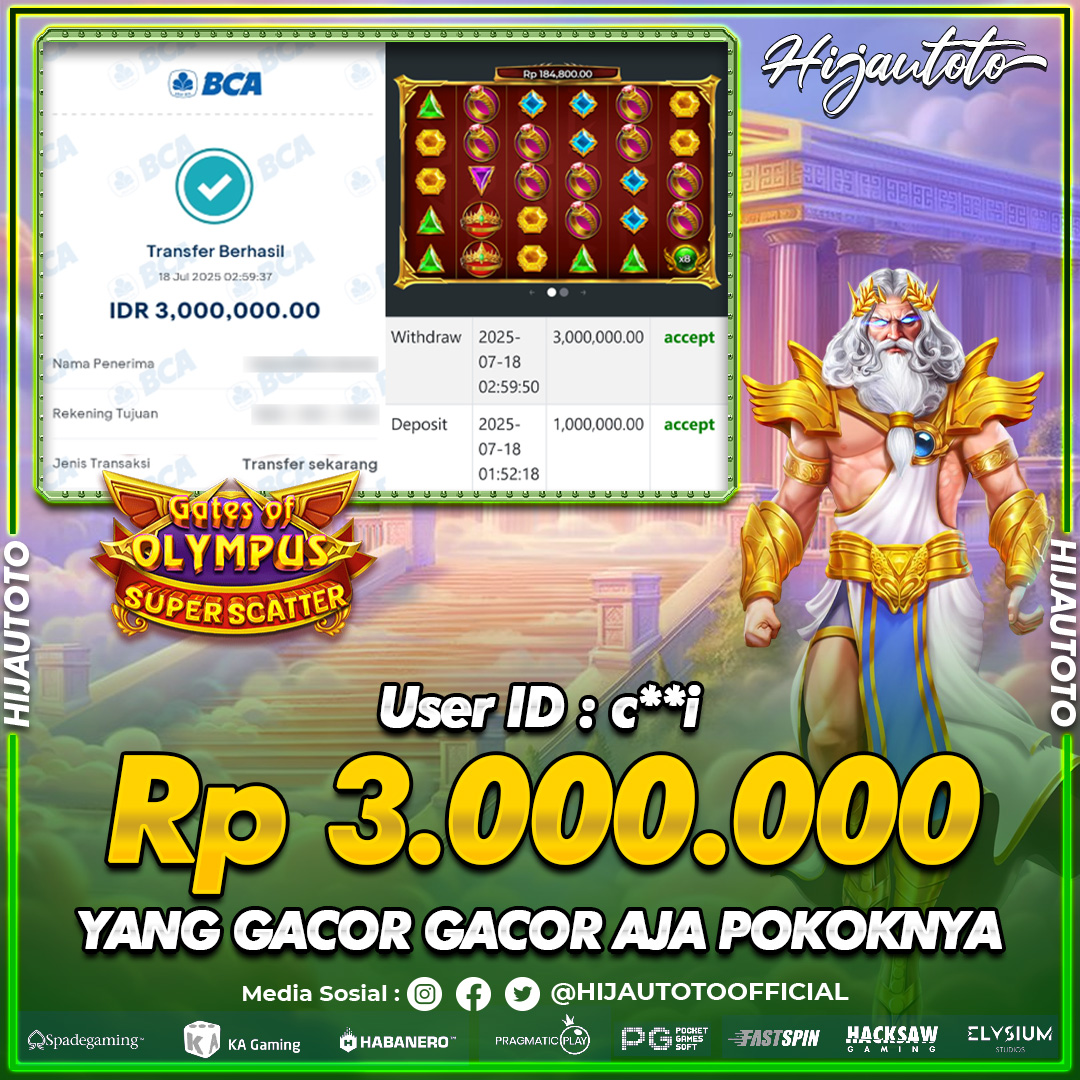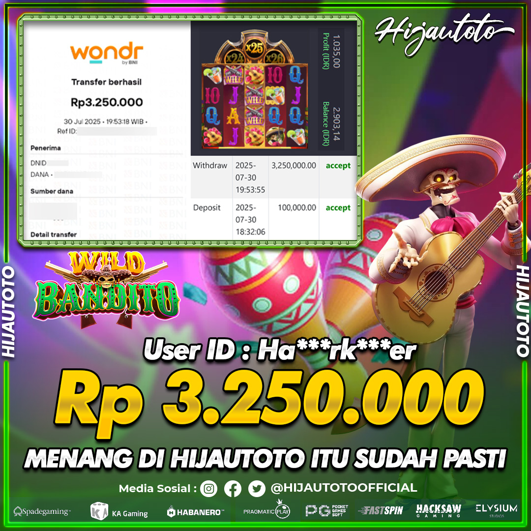 Selamat datang di HIJAUTOTO, tempatnya seru-seruan dan cuan besar! Mulai main cukup dengan modal Rp5.000 aja, taruhan super murah dari Rp100 perak! Mau main slot yang penuh warna? Atau togel dari 20 pasaran paling hits? Atau mungkin tembak ikan yang bikin deg-degan? Tenang, ada juga taruhan bola, sabung ayam, dan live casino yang bikin suasana makin hidup! Daftar sekarang dan dapetin bonus new member 100% langsung, biar modalmu makin tebal. Deposit gampang banget, bisa pakai QRIS, dan kalau butuh bantuan, customer service kita siap 24 jam nonstop. Jadi, tunggu apa lagi? Yuk, gabung dan bawa pulang kemenangannya cuma di HIJAUTOTO!