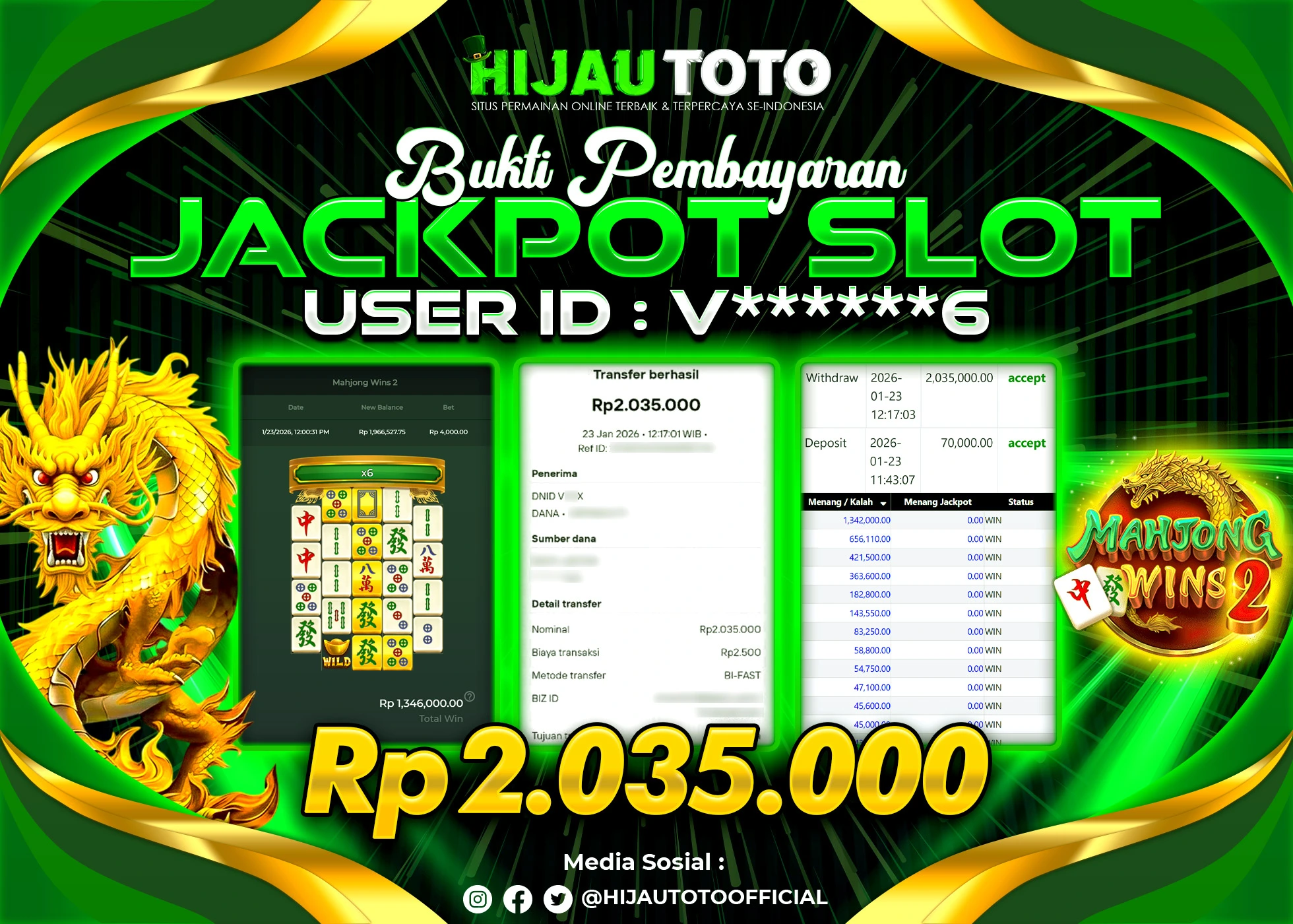 Selamat datang di HIJAUTOTO, tempatnya seru-seruan dan cuan besar! Mulai main cukup dengan modal Rp5.000 aja, taruhan super murah dari Rp100 perak! Mau main slot yang penuh warna? Atau togel dari 20 pasaran paling hits? Atau mungkin tembak ikan yang bikin deg-degan? Tenang, ada juga taruhan bola, sabung ayam, dan live casino yang bikin suasana makin hidup! Daftar sekarang dan dapetin bonus new member 100% langsung, biar modalmu makin tebal. Deposit gampang banget, bisa pakai QRIS, dan kalau butuh bantuan, customer service kita siap 24 jam nonstop. Jadi, tunggu apa lagi? Yuk, gabung dan bawa pulang kemenangannya cuma di HIJAUTOTO!