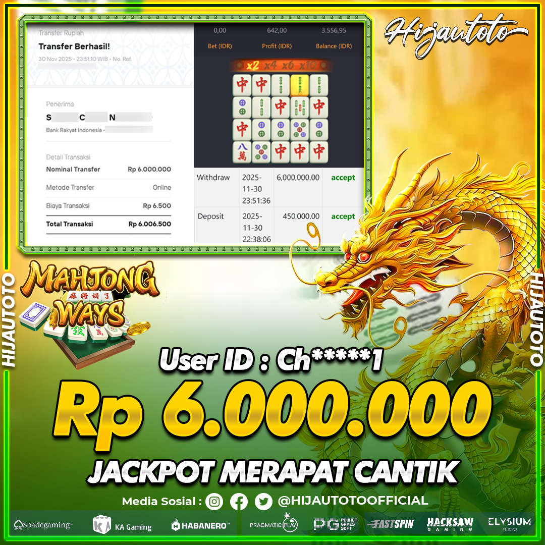 Selamat datang di HIJAUTOTO, tempatnya seru-seruan dan cuan besar! Mulai main cukup dengan modal Rp5.000 aja, taruhan super murah dari Rp100 perak! Mau main slot yang penuh warna? Atau togel dari 20 pasaran paling hits? Atau mungkin tembak ikan yang bikin deg-degan? Tenang, ada juga taruhan bola, sabung ayam, dan live casino yang bikin suasana makin hidup! Daftar sekarang dan dapetin bonus new member 100% langsung, biar modalmu makin tebal. Deposit gampang banget, bisa pakai QRIS, dan kalau butuh bantuan, customer service kita siap 24 jam nonstop. Jadi, tunggu apa lagi? Yuk, gabung dan bawa pulang kemenangannya cuma di HIJAUTOTO!