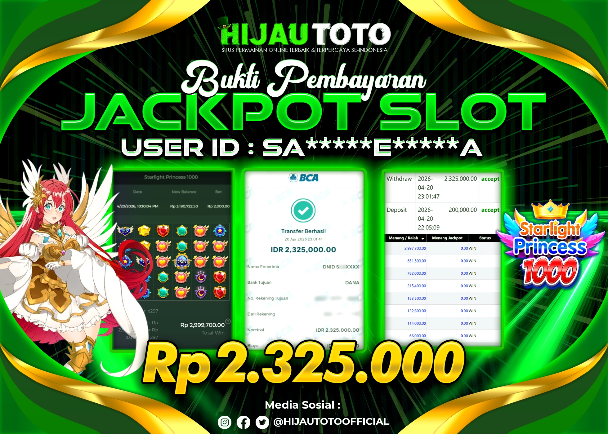 Selamat datang di HIJAUTOTO, tempatnya seru-seruan dan cuan besar! Mulai main cukup dengan modal Rp5.000 aja, taruhan super murah dari Rp100 perak! Mau main slot yang penuh warna? Atau togel dari 20 pasaran paling hits? Atau mungkin tembak ikan yang bikin deg-degan? Tenang, ada juga taruhan bola, sabung ayam, dan live casino yang bikin suasana makin hidup! Daftar sekarang dan dapetin bonus new member 100% langsung, biar modalmu makin tebal. Deposit gampang banget, bisa pakai QRIS, dan kalau butuh bantuan, customer service kita siap 24 jam nonstop. Jadi, tunggu apa lagi? Yuk, gabung dan bawa pulang kemenangannya cuma di HIJAUTOTO!