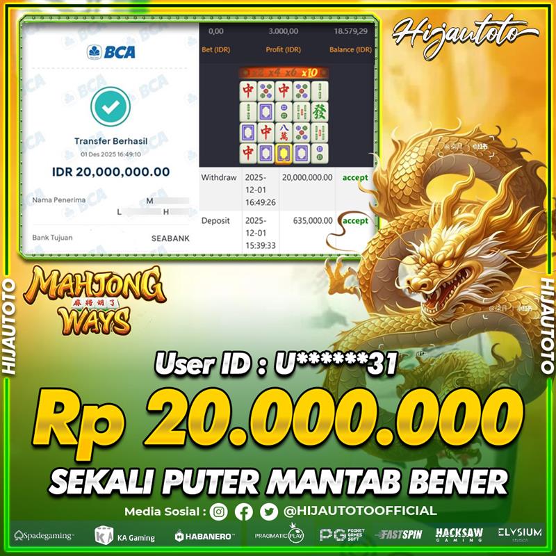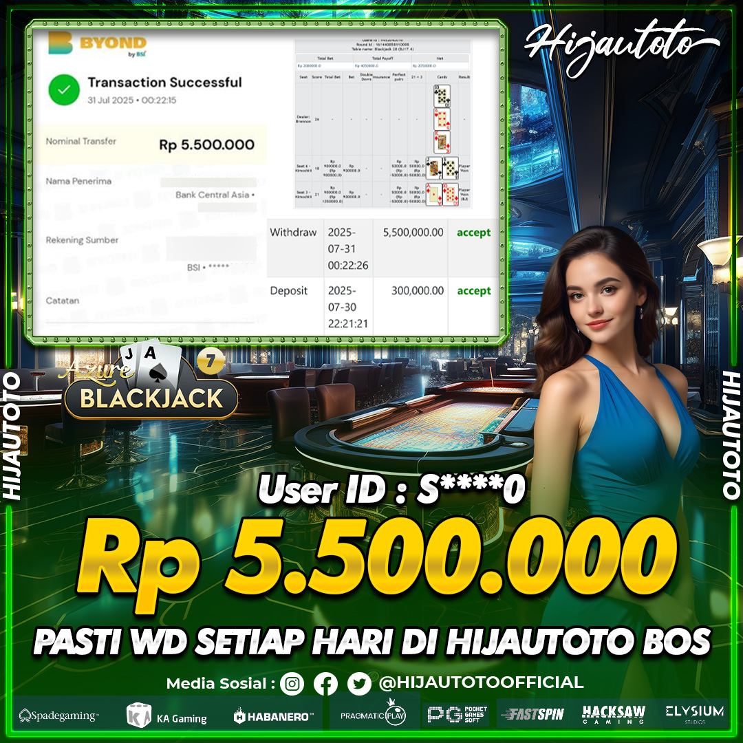 Selamat datang di HIJAUTOTO, tempatnya seru-seruan dan cuan besar! Mulai main cukup dengan modal Rp5.000 aja, taruhan super murah dari Rp100 perak! Mau main slot yang penuh warna? Atau togel dari 20 pasaran paling hits? Atau mungkin tembak ikan yang bikin deg-degan? Tenang, ada juga taruhan bola, sabung ayam, dan live casino yang bikin suasana makin hidup! Daftar sekarang dan dapetin bonus new member 100% langsung, biar modalmu makin tebal. Deposit gampang banget, bisa pakai QRIS, dan kalau butuh bantuan, customer service kita siap 24 jam nonstop. Jadi, tunggu apa lagi? Yuk, gabung dan bawa pulang kemenangannya cuma di HIJAUTOTO!