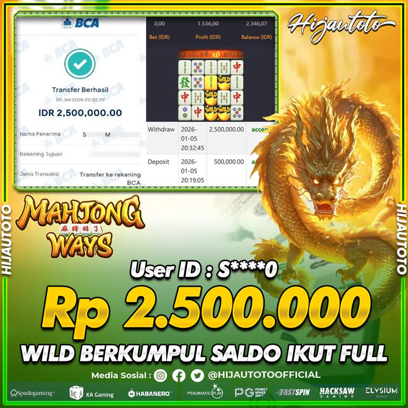 Selamat Kepada Member HIJAUTOTO S****0 Telah Jackpot Di SLOT MAHJONG WAYS