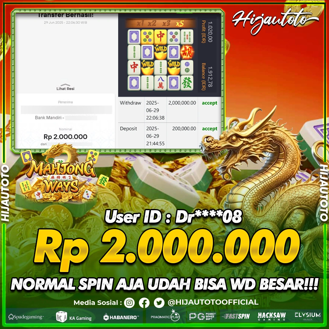 Selamat Kepada Member HIJAUTOTO DR****08 Telah Jackpot Di SLOT MAHJONG WAYS