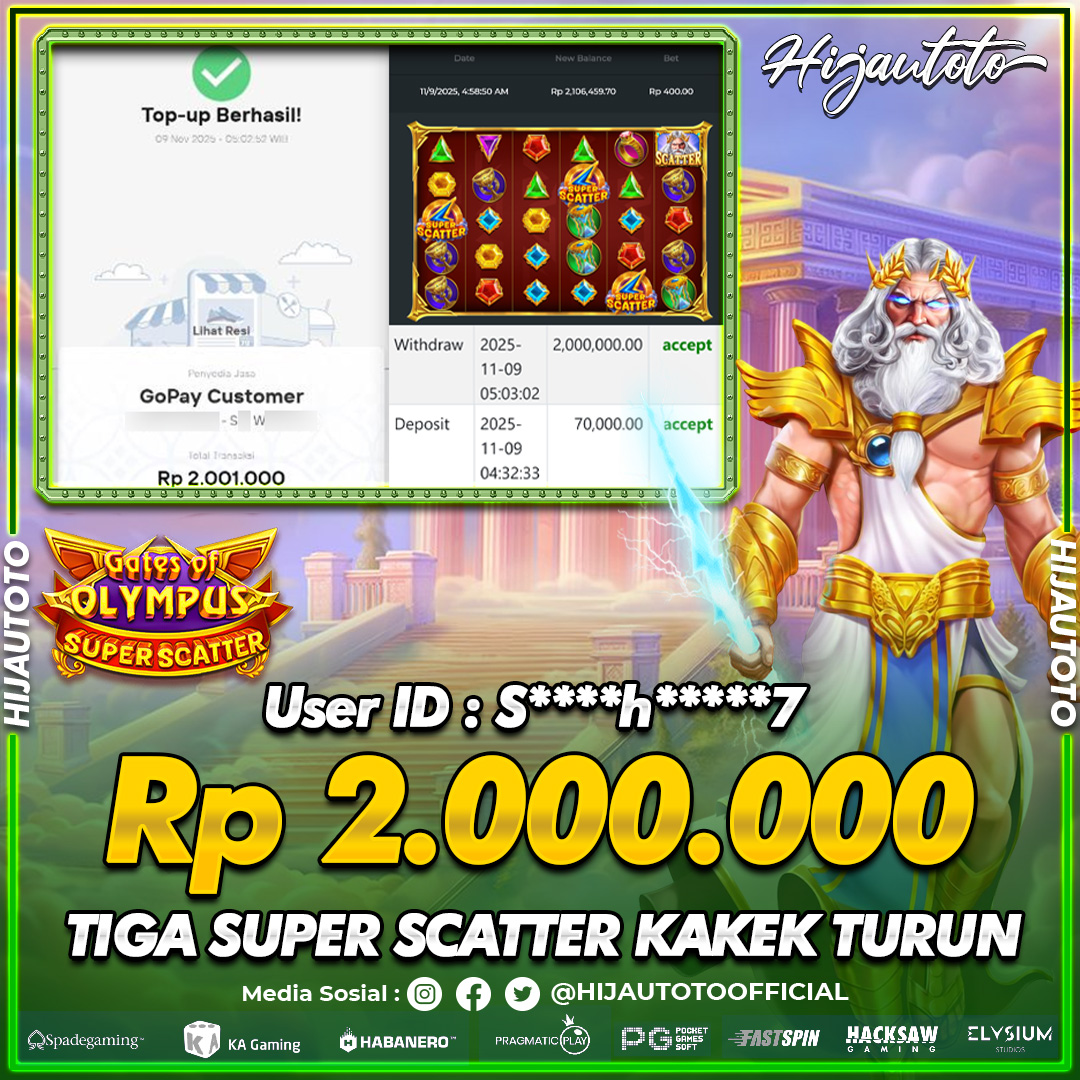 Karena berhasil memenangkan Rp.Rp.20.000.000 dari permainan seru SLOT GATES OF OLYMPUS SUPER SCATTER di HIJAUTOTO! πŸ’°πŸ’Έ