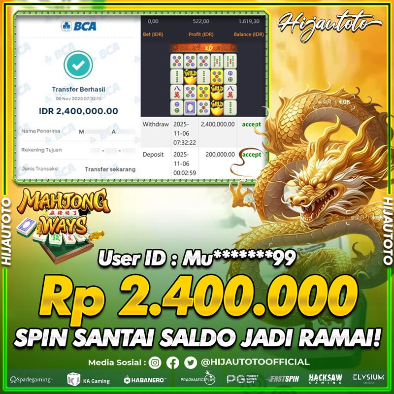Selamat datang di HIJAUTOTO, tempatnya seru-seruan dan cuan besar! Mulai main cukup dengan modal Rp5.000 aja, taruhan super murah dari Rp100 perak! Mau main slot yang penuh warna? Atau togel dari 20 pasaran paling hits? Atau mungkin tembak ikan yang bikin deg-degan? Tenang, ada juga taruhan bola, sabung ayam, dan live casino yang bikin suasana makin hidup! Daftar sekarang dan dapetin bonus new member 100% langsung, biar modalmu makin tebal. Deposit gampang banget, bisa pakai QRIS, dan kalau butuh bantuan, customer service kita siap 24 jam nonstop. Jadi, tunggu apa lagi? Yuk, gabung dan bawa pulang kemenangannya cuma di HIJAUTOTO!