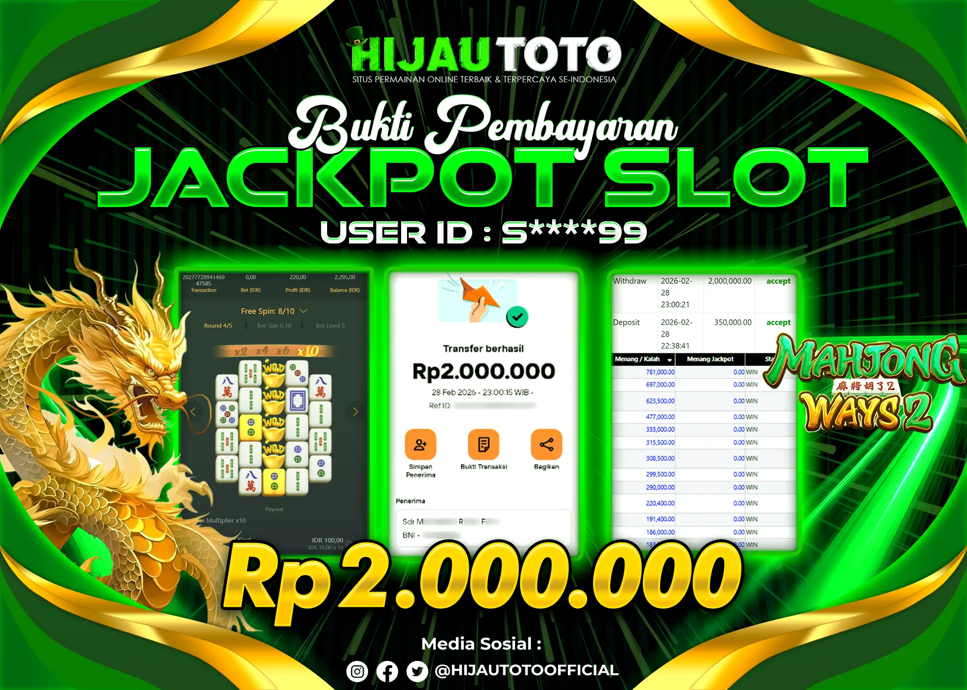 Selamat datang di HIJAUTOTO, tempatnya seru-seruan dan cuan besar! Mulai main cukup dengan modal Rp5.000 aja, taruhan super murah dari Rp100 perak! Mau main slot yang penuh warna? Atau togel dari 20 pasaran paling hits? Atau mungkin tembak ikan yang bikin deg-degan? Tenang, ada juga taruhan bola, sabung ayam, dan live casino yang bikin suasana makin hidup! Daftar sekarang dan dapetin bonus new member 100% langsung, biar modalmu makin tebal. Deposit gampang banget, bisa pakai QRIS, dan kalau butuh bantuan, customer service kita siap 24 jam nonstop. Jadi, tunggu apa lagi? Yuk, gabung dan bawa pulang kemenangannya cuma di HIJAUTOTO!
