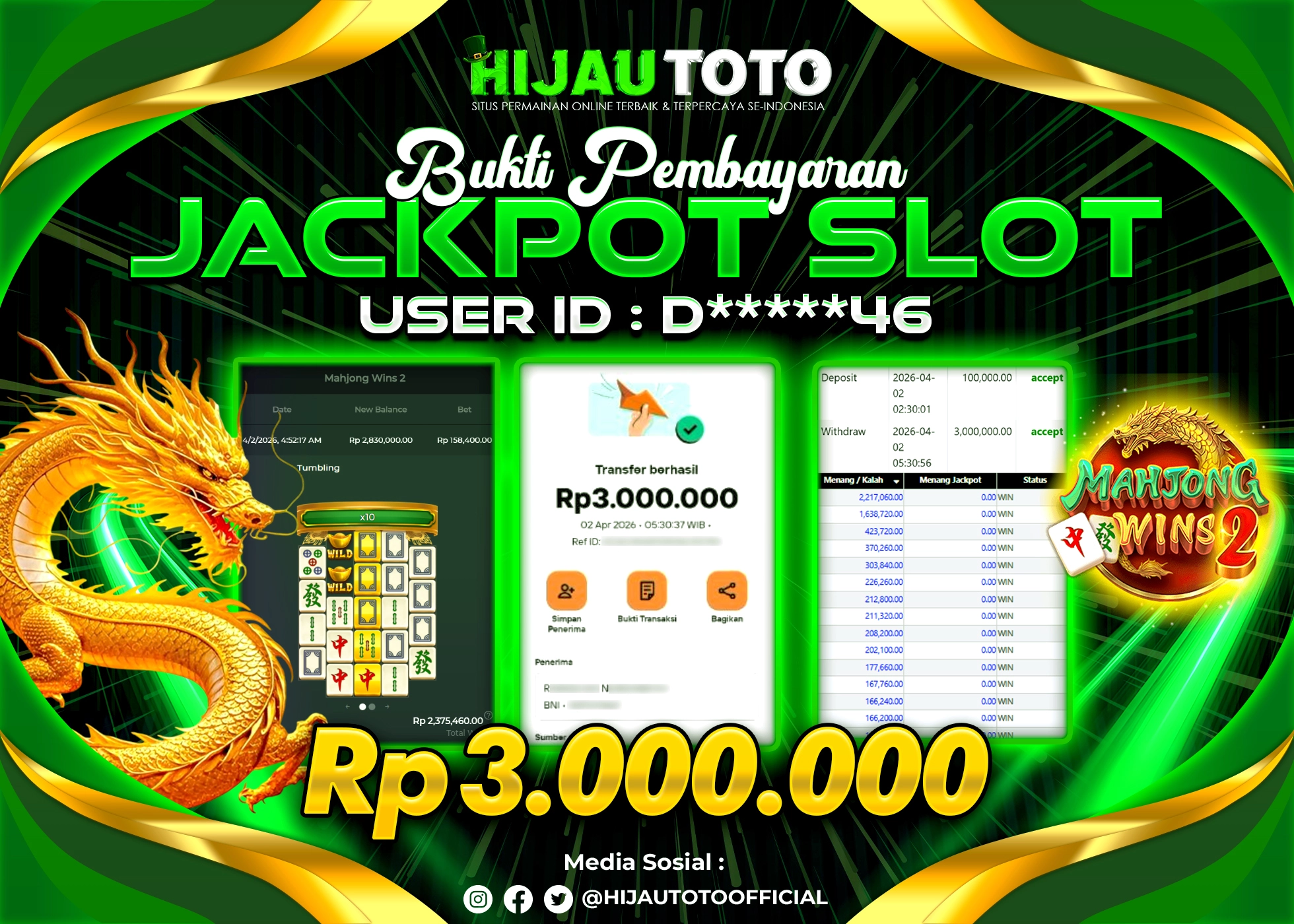 Bergabung dengan HIJAUTOTO sangat mudah dan cepat. Cukup lakukan pendaftaran dengan data lengkap, lakukan deposit minimal Rp5.000 melalui berbagai metode termasuk QRIS, dan mulai bertaruh dengan minimal taruhan Rp100. Dapatkan juga bonus new member 100% untuk modal bermain lebih besar.