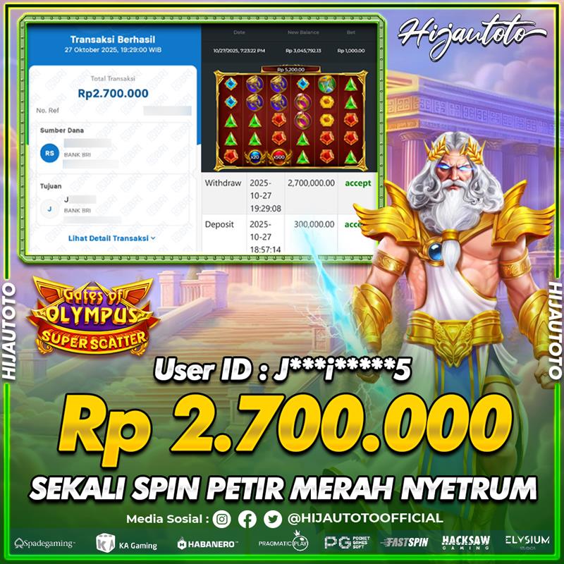 Selamat Kepada Member HIJAUTOTO Z**B*****7 Telah Jackpot Di SLOT GATES OF OLYMPUS SUPER SCATTER