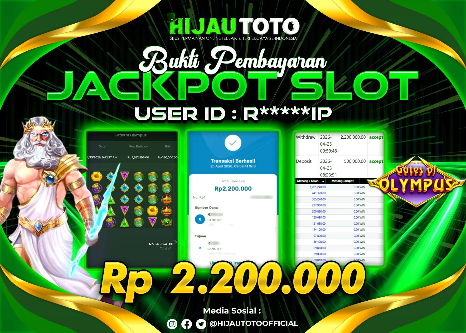 Bergabung dengan HIJAUTOTO sangat mudah dan cepat. Cukup lakukan pendaftaran dengan data lengkap, lakukan deposit minimal Rp5.000 melalui berbagai metode termasuk QRIS, dan mulai bertaruh dengan minimal taruhan Rp100. Dapatkan juga bonus new member 100% untuk modal bermain lebih besar.