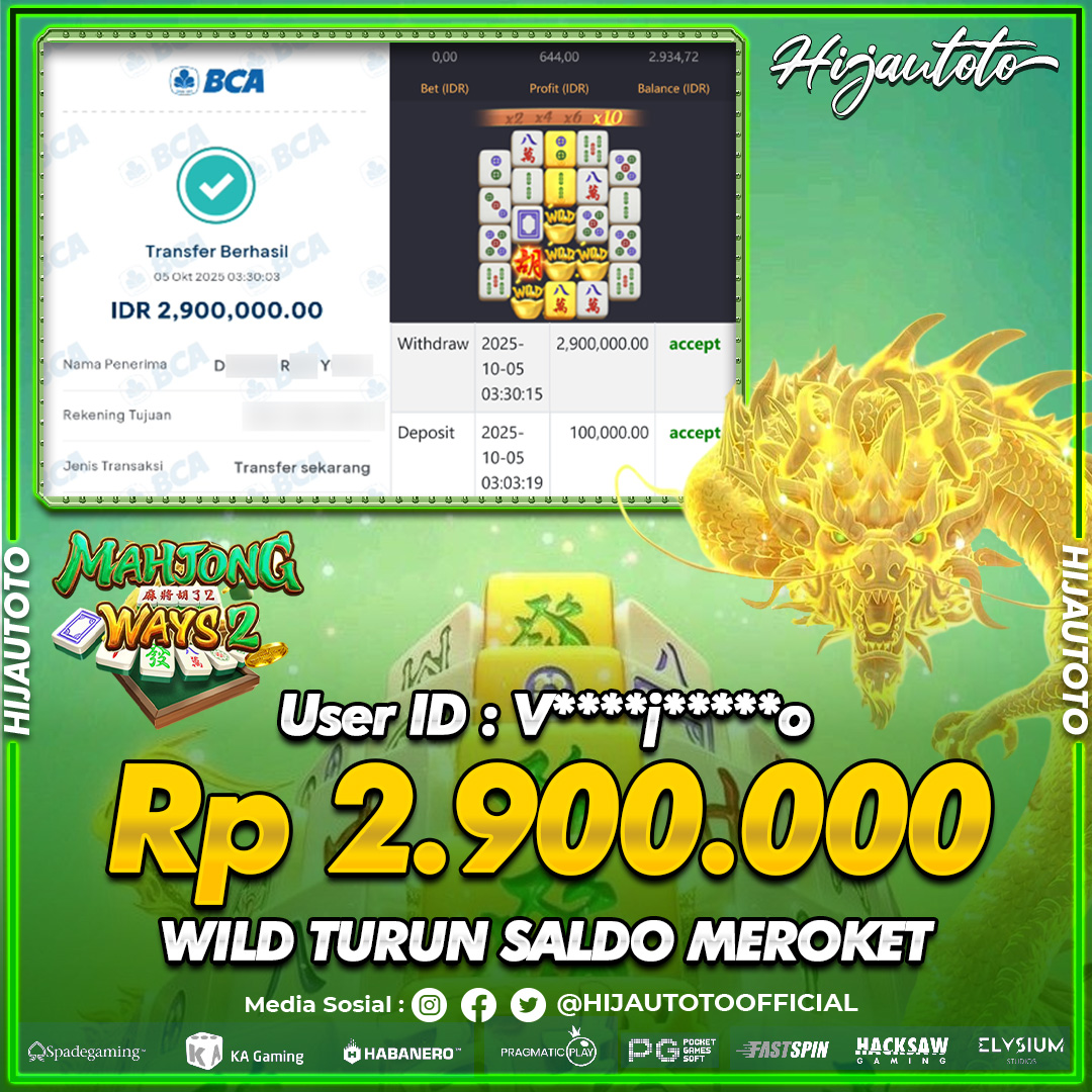 Karena berhasil memenangkan Rp.Rp.3.000.000 dari permainan seru SLOT MAHJONG WAYS 2 di HIJAUTOTO! πŸ’°πŸ’Έ