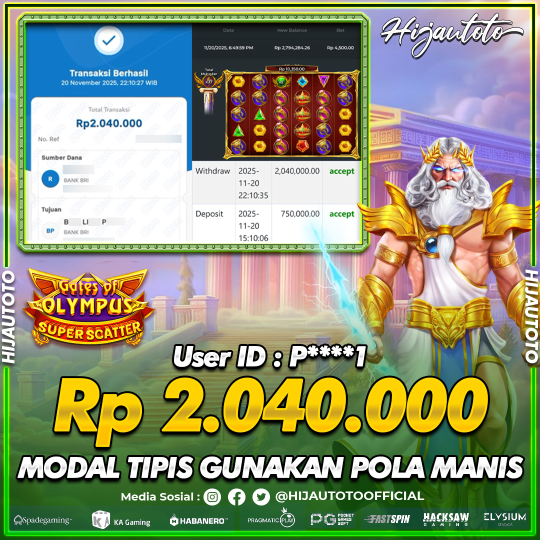 Selamat Kepada Member HIJAUTOTO Z**B*****7 Telah Jackpot Di SLOT GATES OF OLYMPUS SUPER SCATTER