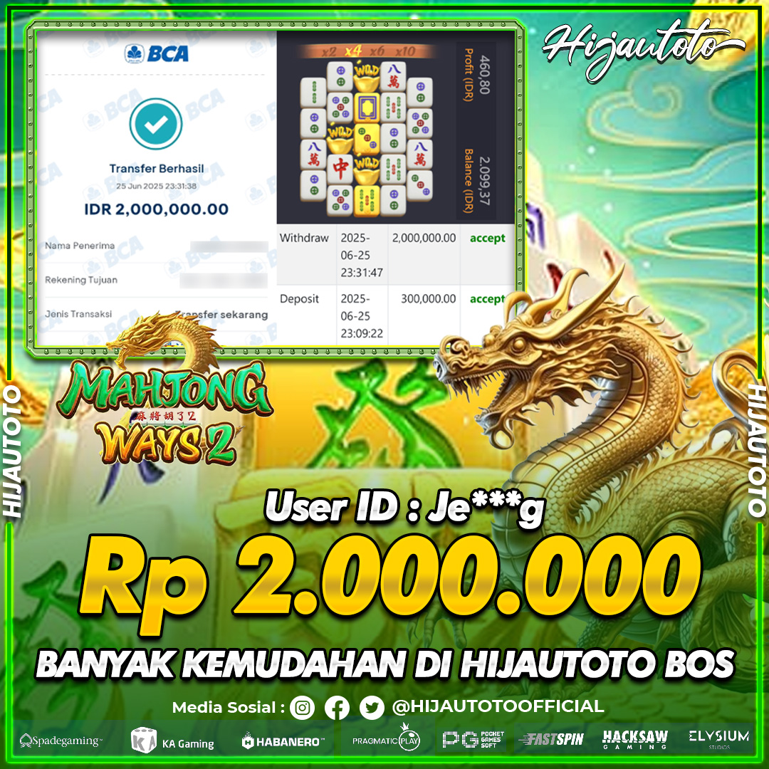 Selamat datang di HIJAUTOTO, tempatnya seru-seruan dan cuan besar! Mulai main cukup dengan modal Rp5.000 aja, taruhan super murah dari Rp100 perak! Mau main slot yang penuh warna? Atau togel dari 20 pasaran paling hits? Atau mungkin tembak ikan yang bikin deg-degan? Tenang, ada juga taruhan bola, sabung ayam, dan live casino yang bikin suasana makin hidup! Daftar sekarang dan dapetin bonus new member 100% langsung, biar modalmu makin tebal. Deposit gampang banget, bisa pakai QRIS, dan kalau butuh bantuan, customer service kita siap 24 jam nonstop. Jadi, tunggu apa lagi? Yuk, gabung dan bawa pulang kemenangannya cuma di HIJAUTOTO!