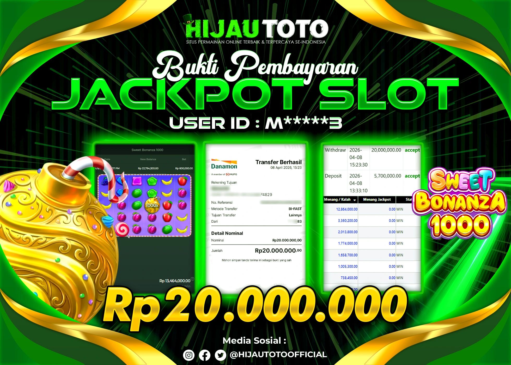 Selamat datang di HIJAUTOTO, tempatnya seru-seruan dan cuan besar! Mulai main cukup dengan modal Rp5.000 aja, taruhan super murah dari Rp100 perak! Mau main slot yang penuh warna? Atau togel dari 20 pasaran paling hits? Atau mungkin tembak ikan yang bikin deg-degan? Tenang, ada juga taruhan bola, sabung ayam, dan live casino yang bikin suasana makin hidup! Daftar sekarang dan dapetin bonus new member 100% langsung, biar modalmu makin tebal. Deposit gampang banget, bisa pakai QRIS, dan kalau butuh bantuan, customer service kita siap 24 jam nonstop. Jadi, tunggu apa lagi? Yuk, gabung dan bawa pulang kemenangannya cuma di HIJAUTOTO!