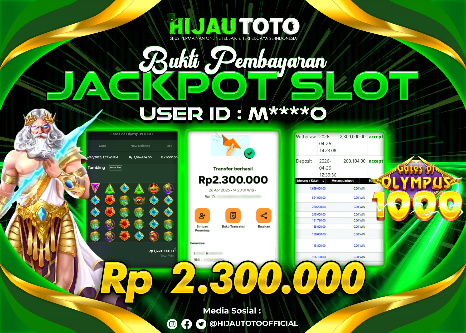Selamat datang di HIJAUTOTO, tempatnya seru-seruan dan cuan besar! Mulai main cukup dengan modal Rp5.000 aja, taruhan super murah dari Rp100 perak! Mau main slot yang penuh warna? Atau togel dari 20 pasaran paling hits? Atau mungkin tembak ikan yang bikin deg-degan? Tenang, ada juga taruhan bola, sabung ayam, dan live casino yang bikin suasana makin hidup! Daftar sekarang dan dapetin bonus new member 100% langsung, biar modalmu makin tebal. Deposit gampang banget, bisa pakai QRIS, dan kalau butuh bantuan, customer service kita siap 24 jam nonstop. Jadi, tunggu apa lagi? Yuk, gabung dan bawa pulang kemenangannya cuma di HIJAUTOTO!