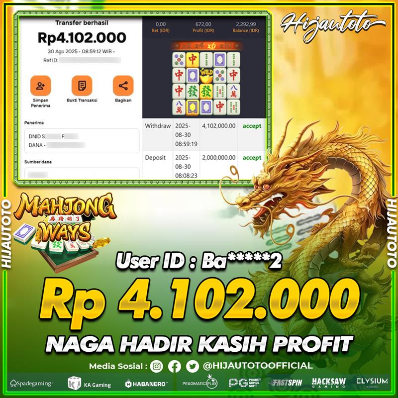 Cuma di HIJAUTOTO, tempat paling AMAN, CEPAT, & TERPERCAYA buat pecinta game SLOT MAHJONG WAYS 2!