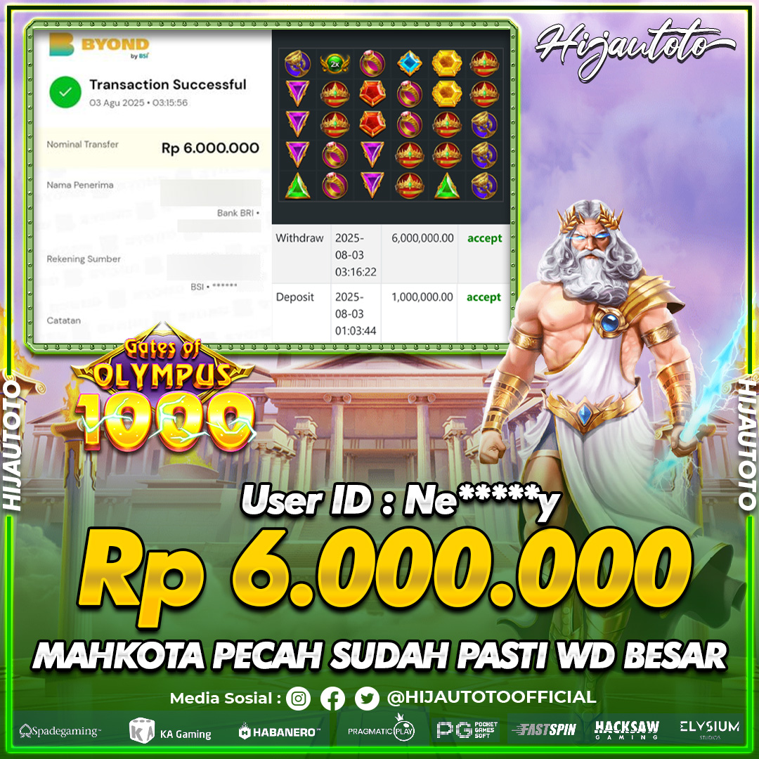 β¨ JACKPOT DI SLOT GATES OF OLYMPUS 1000 β¨