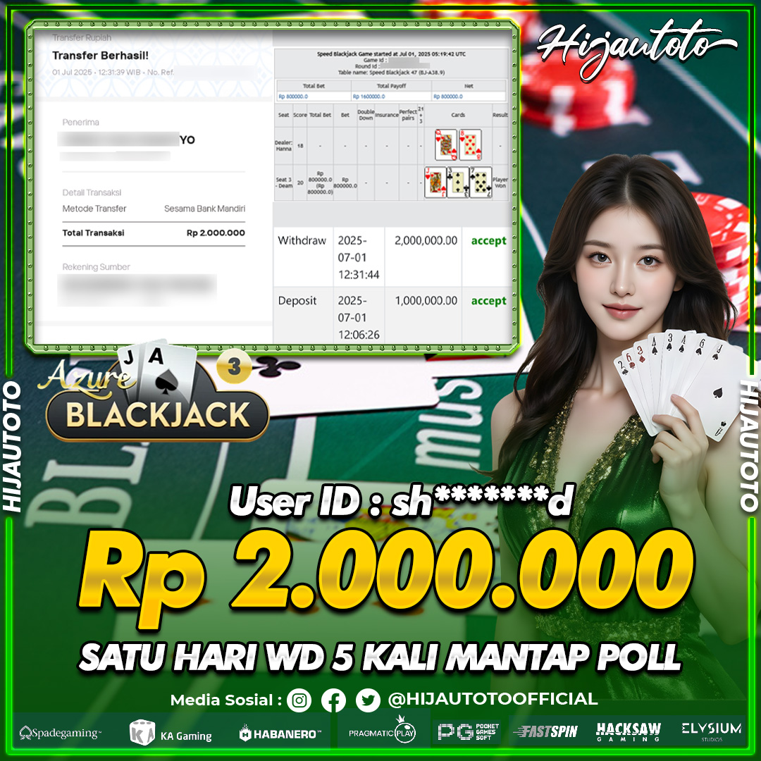 Selamat datang di HIJAUTOTO, tempatnya seru-seruan dan cuan besar! Mulai main cukup dengan modal Rp5.000 aja, taruhan super murah dari Rp100 perak! Mau main slot yang penuh warna? Atau togel dari 20 pasaran paling hits? Atau mungkin tembak ikan yang bikin deg-degan? Tenang, ada juga taruhan bola, sabung ayam, dan live casino yang bikin suasana makin hidup! Daftar sekarang dan dapetin bonus new member 100% langsung, biar modalmu makin tebal. Deposit gampang banget, bisa pakai QRIS, dan kalau butuh bantuan, customer service kita siap 24 jam nonstop. Jadi, tunggu apa lagi? Yuk, gabung dan bawa pulang kemenangannya cuma di HIJAUTOTO!