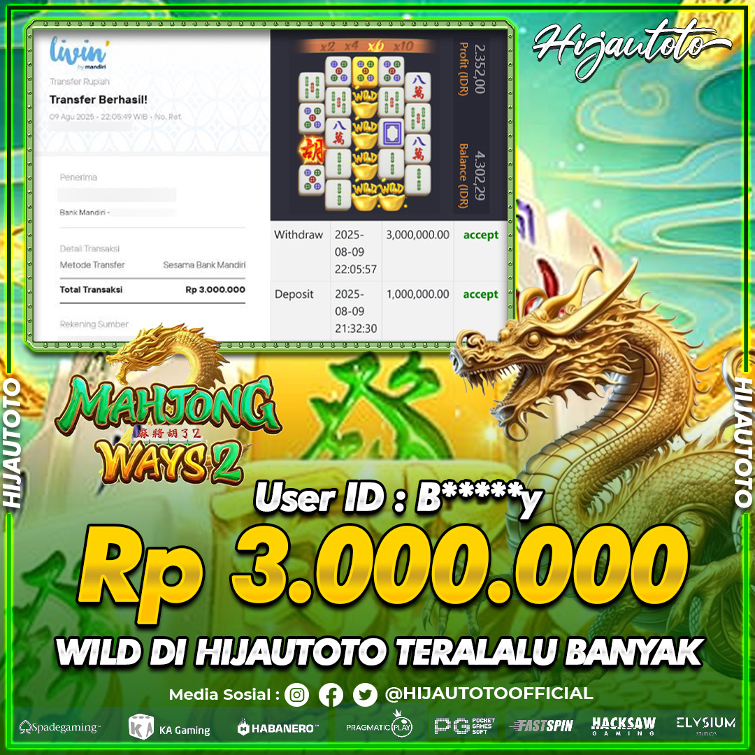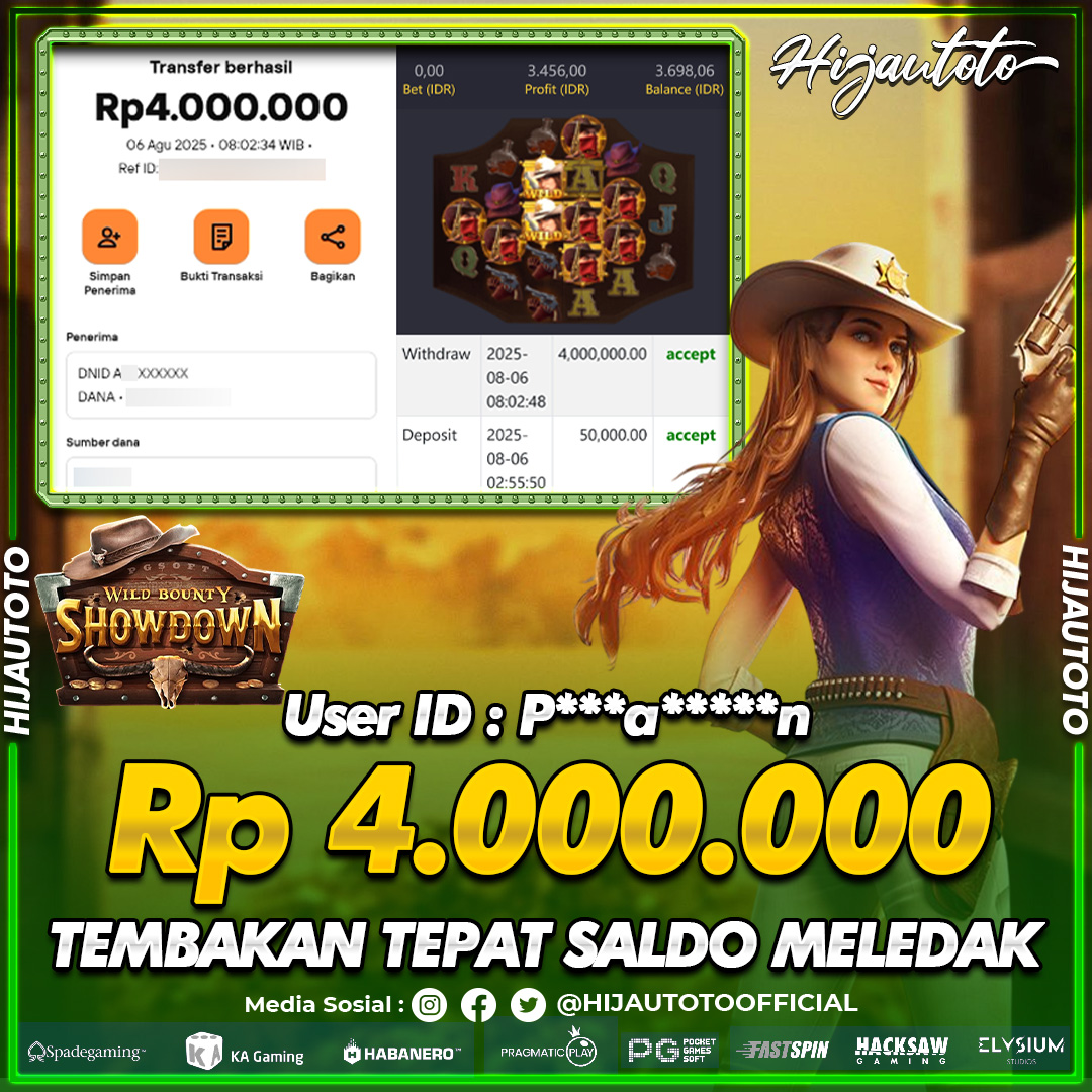 Selamat datang di HIJAUTOTO, tempatnya seru-seruan dan cuan besar! Mulai main cukup dengan modal Rp5.000 aja, taruhan super murah dari Rp100 perak! Mau main slot yang penuh warna? Atau togel dari 20 pasaran paling hits? Atau mungkin tembak ikan yang bikin deg-degan? Tenang, ada juga taruhan bola, sabung ayam, dan live casino yang bikin suasana makin hidup! Daftar sekarang dan dapetin bonus new member 100% langsung, biar modalmu makin tebal. Deposit gampang banget, bisa pakai QRIS, dan kalau butuh bantuan, customer service kita siap 24 jam nonstop. Jadi, tunggu apa lagi? Yuk, gabung dan bawa pulang kemenangannya cuma di HIJAUTOTO!