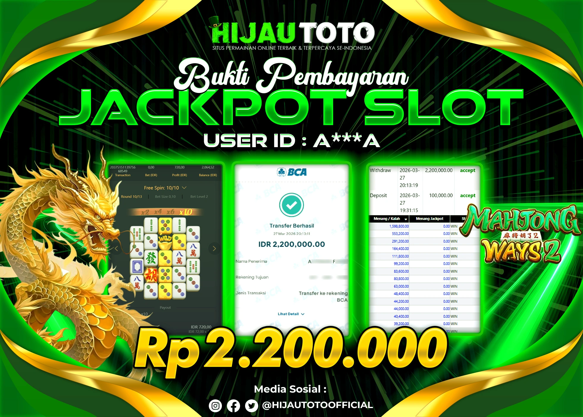 Bergabung dengan HIJAUTOTO sangat mudah dan cepat. Cukup lakukan pendaftaran dengan data lengkap, lakukan deposit minimal Rp5.000 melalui berbagai metode termasuk QRIS, dan mulai bertaruh dengan minimal taruhan Rp100. Dapatkan juga bonus new member 100% untuk modal bermain lebih besar.