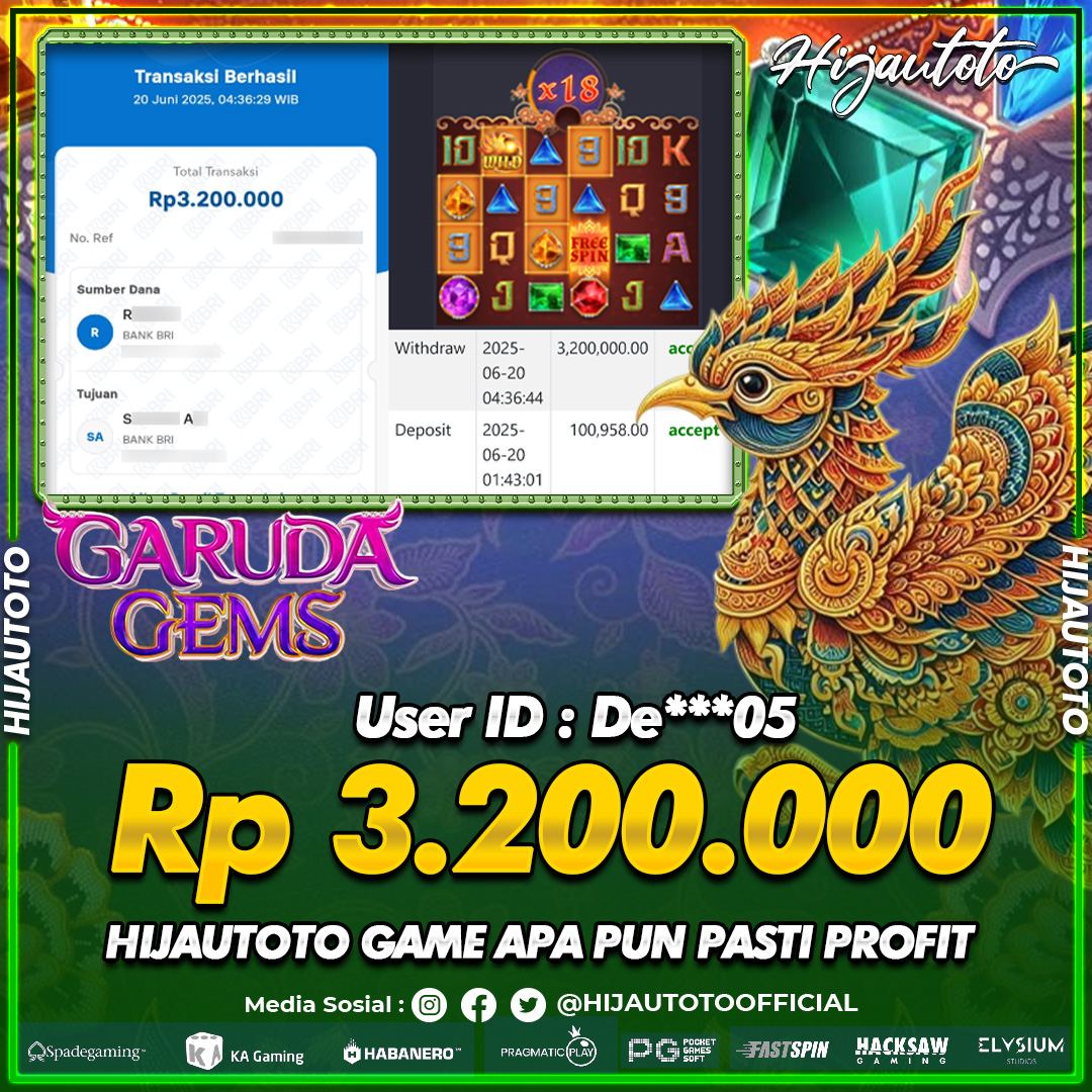 Selamat Kepada Member HIJAUTOTO DE****5 Telah Jackpot Di SLOT GARUDA GEMS